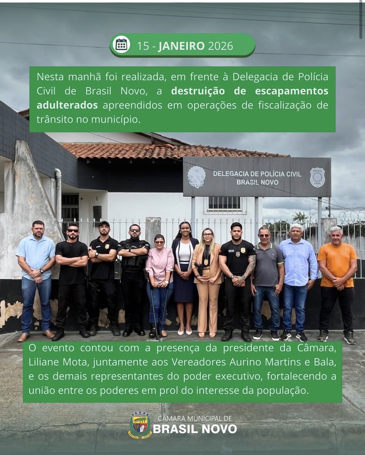 CÂMARA MUNICIPAL DE BRASIL NOVO PARTICIPA DE AÇÃO DE DESTRUIÇÃO DE ESCAPAMENTOS ADULTERADOS APREENDIDOS.