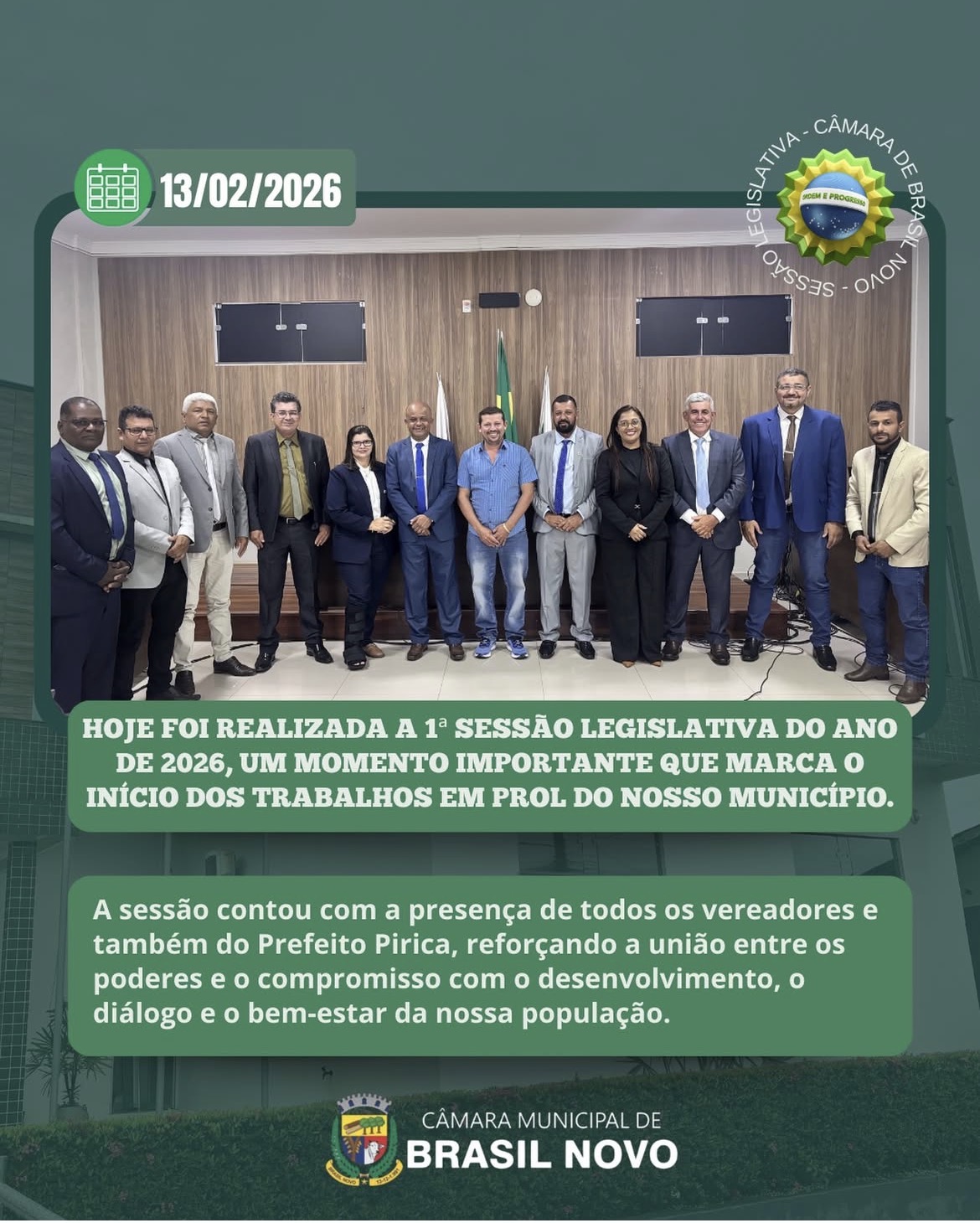 Sessão Legislativa do ano de 2026, um momento importante que marca o início dos trabalhos em prol do nosso município.
